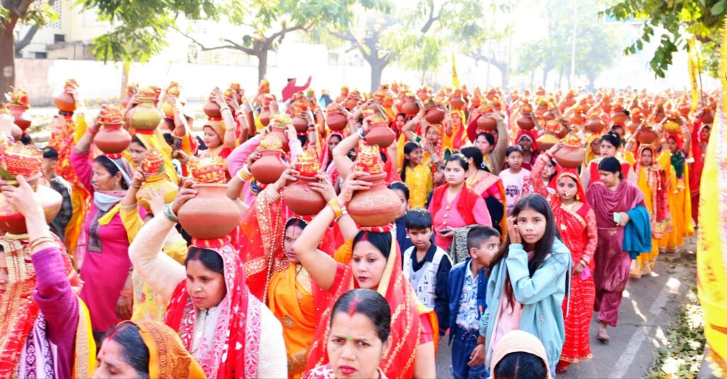 वृंदावन से लाईं बांके बिहारी जी की चरण पादुकाओं की अगुआई में निकली कलश रथ यात्रा